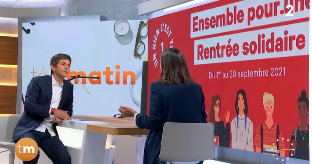 Ce mercredi 8 septembre 2021, Cécile Duffau était l’invitée de Thomas Sotto dans Télématin, sur France 2. Vincent Lindon, notre parrain aux côtés de Marie Drucker et Antoine Griezmann, est également intervenu dans l’émission. A cette occasion, la fondatrice de Un Rien C’est Tout présentait la « Rentrée Solidaire« , une opération destinée aux étudiants touchés de […]
